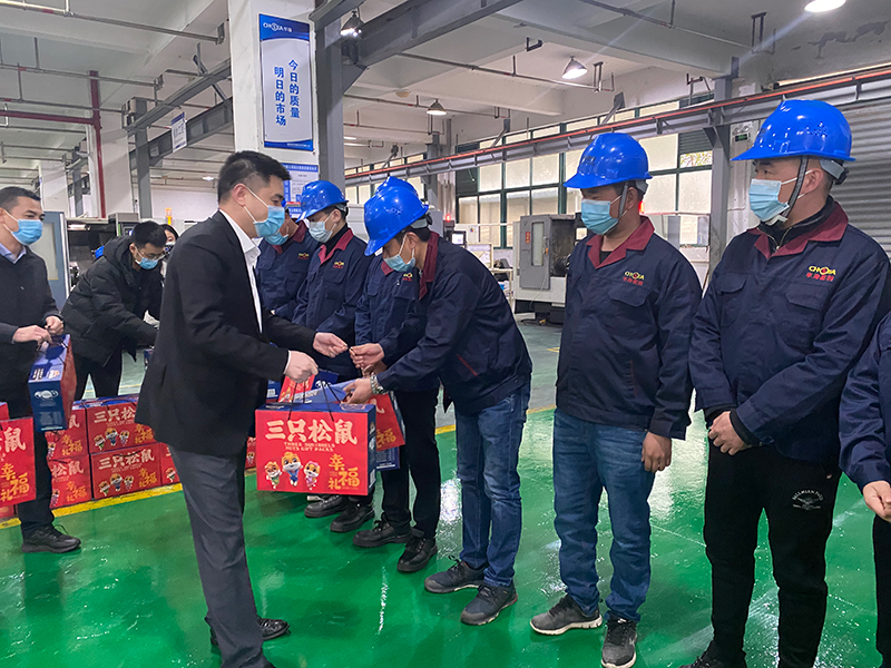 龙湾区夏区长在2022年前来开云手机app下载官网安装苹果对公司员工展开新春慰问活动。