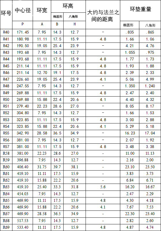 R型垫片的制造符合API 6A、6B和ASME b16.20适合API ASME/ANSI B16.5法兰。在椭圆形和八角形配置,这两种类型是可互换的现代八角型槽法兰。