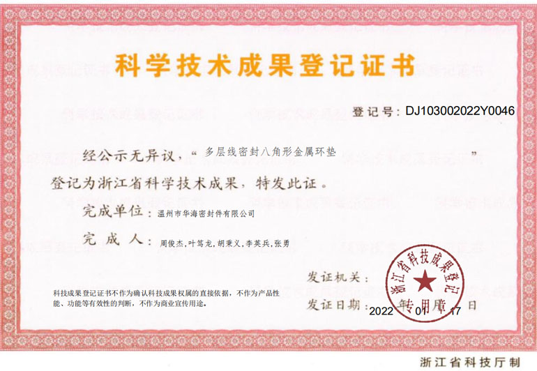 温州市企业技术研究开发中心 浙江省科学技术成果登记证书