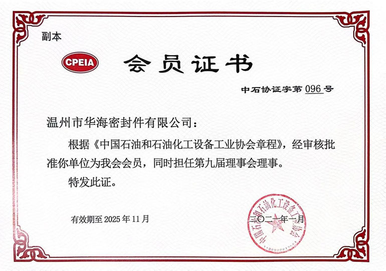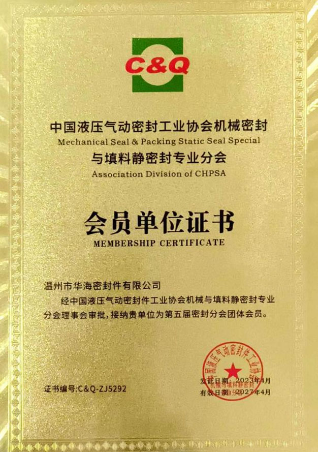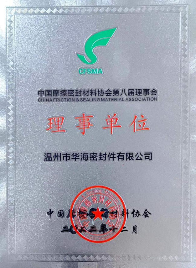 中国摩擦密封材料协会理事单位证书 中国液压气动密封件工业协会会员单位证书