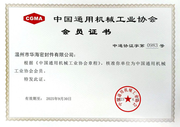 中国通用机械工业协会会员单位证书 慈溪密封行业协会会员单位证书
